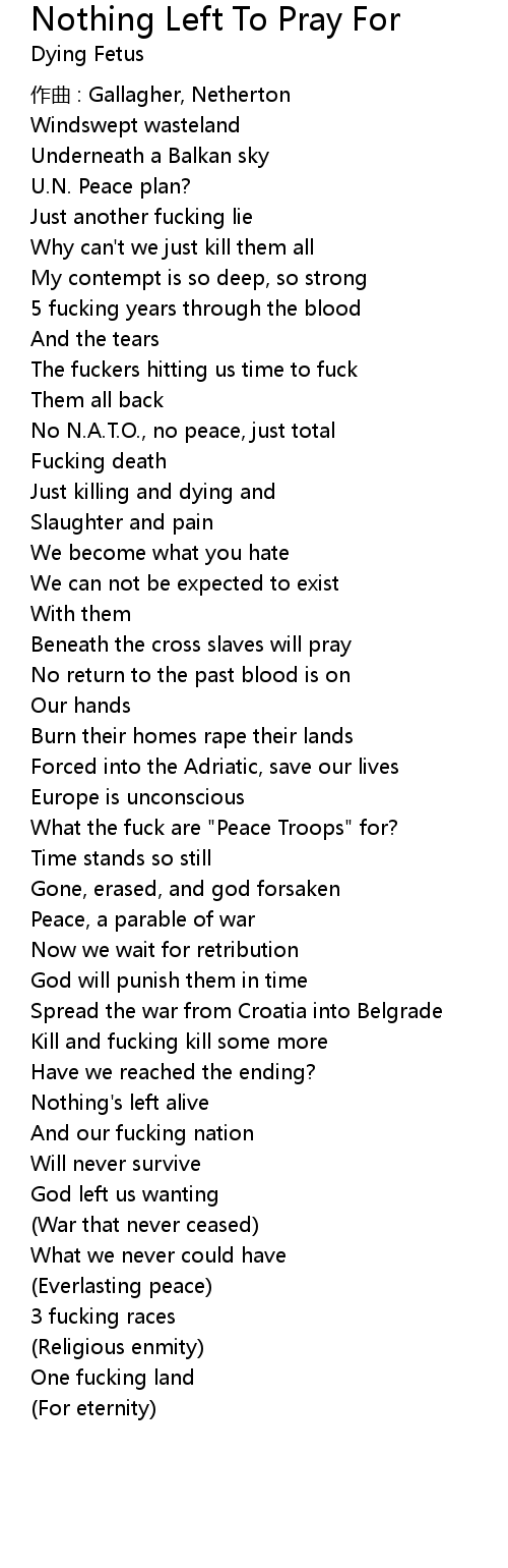 | 歌曲 | Nothing Left To Pray For |