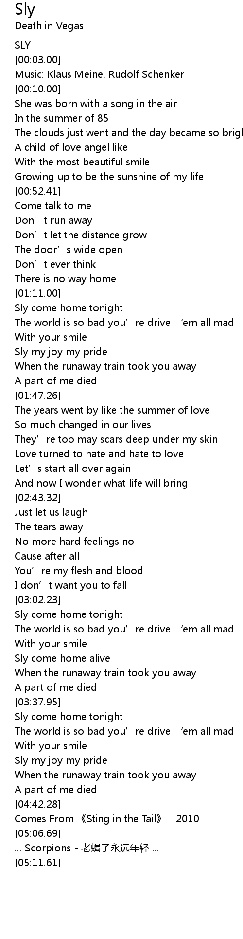| [04:46.65] | Comes From Sting in the Tail 2010 |