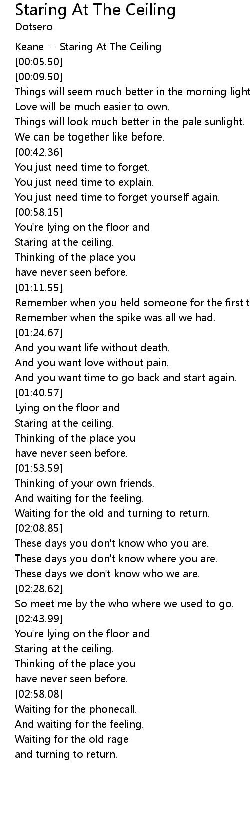 | [00:00.50] | Keane - Staring At The Ceiling |