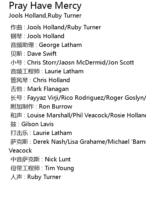 | [00:00.000] | zuo qu : Jools Holland Ruby Turner |
