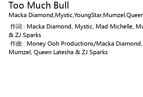| [00:00.000] | 作词 : Macka Diamond, Mystic, Mad Michelle, Mumzel, Queen Latesha & ZJ Sparks |