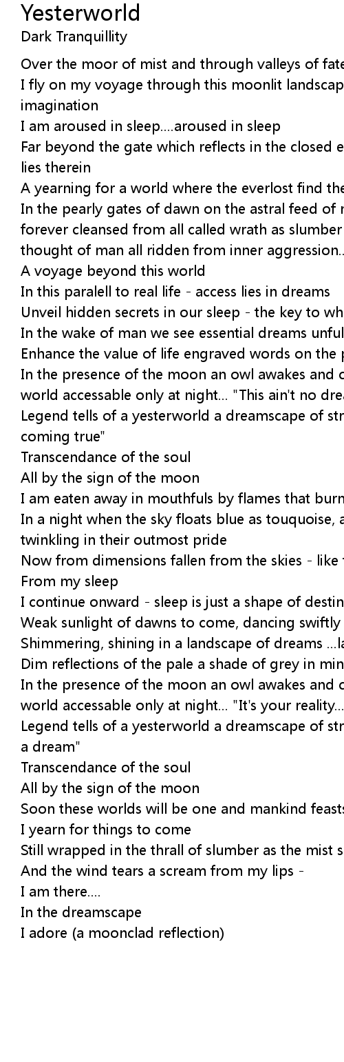 Legend tells of a yesterworld a dreamscape of strange light "It's your dream coming true" |