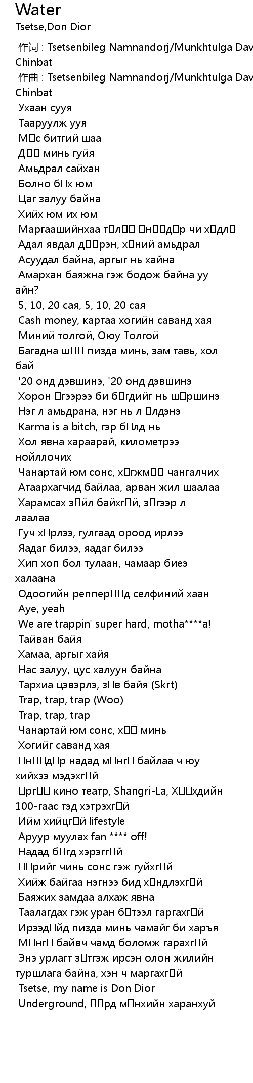[00:00.000] 作词 : Tsetsenbileg Namnandorj/Munkhtulga Davaadorj/Erdene-Ochir Chinbat