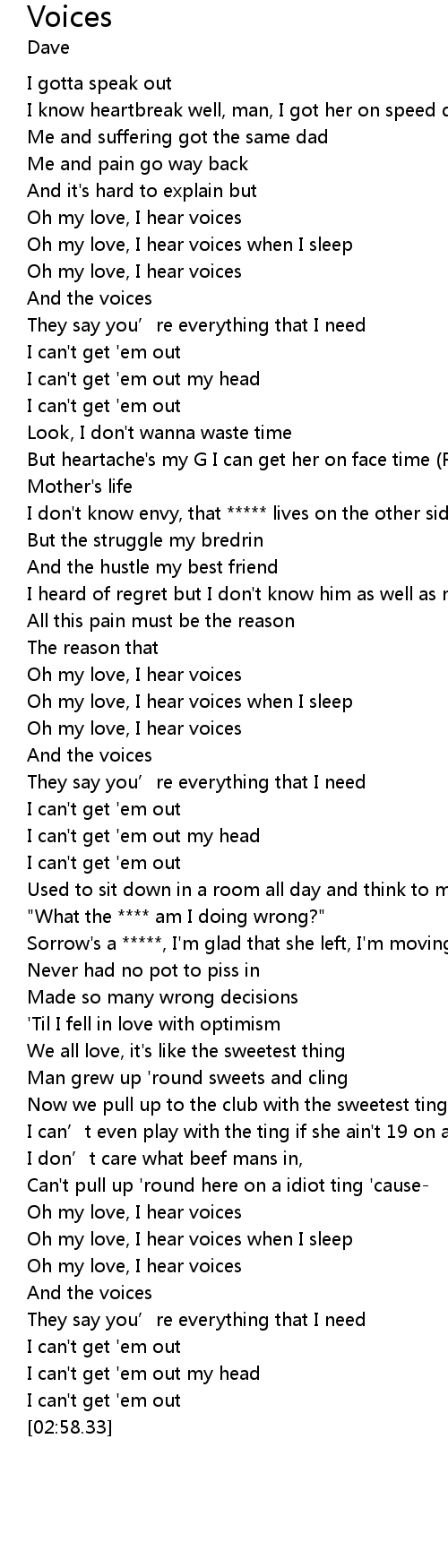 | [02:35.67] | Oh my love, I hear voices |