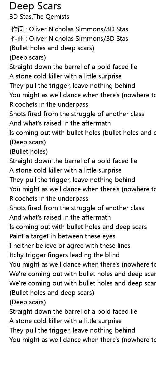 | [00:40.59] | Is coming out with bullet holes bullet holes and deep scars |