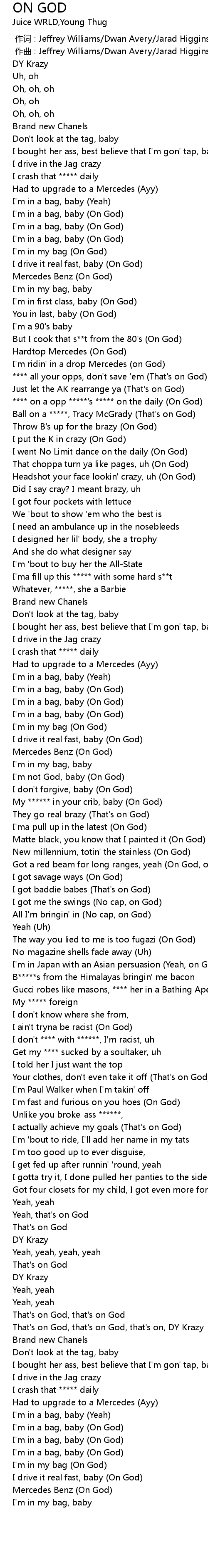 | [01:47.74] | My ****** in your crib, baby (On God) |