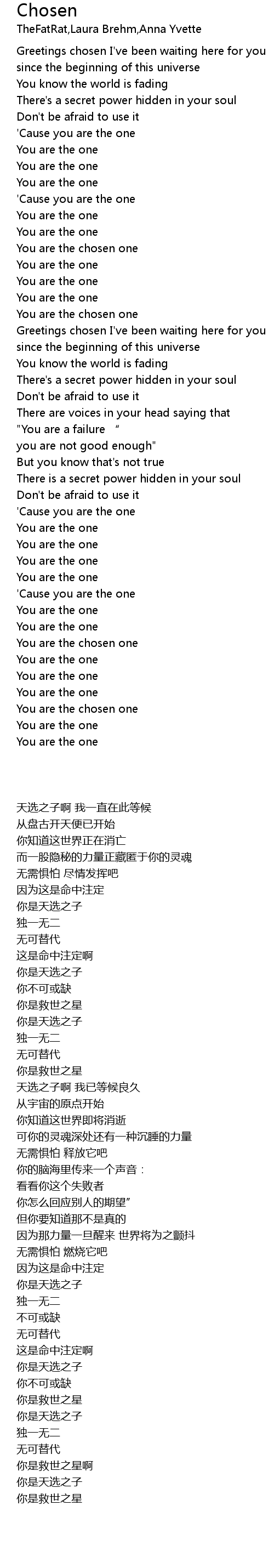 | [00:59.04] | You are the chosen one |