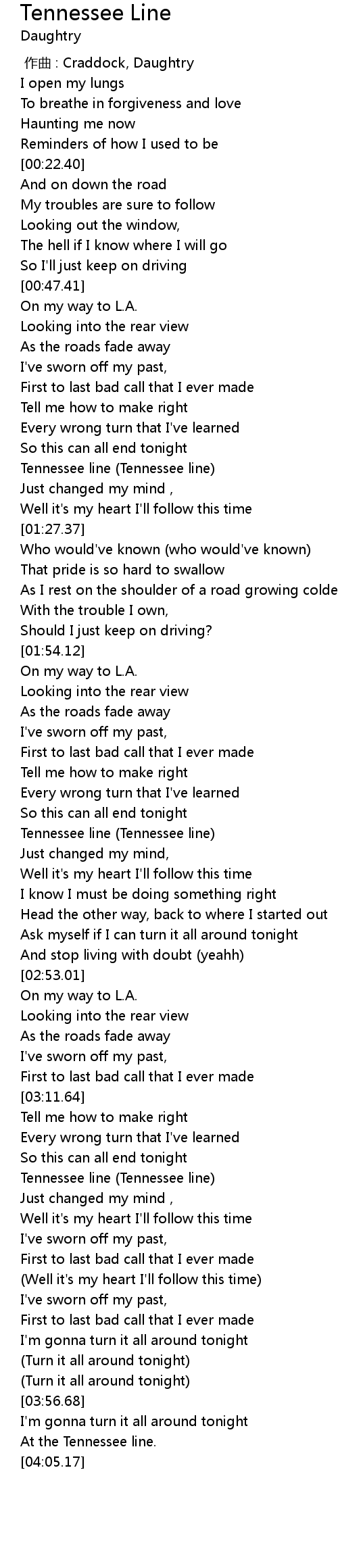 | [03:23.56] | Tennessee line (Tennessee line) |