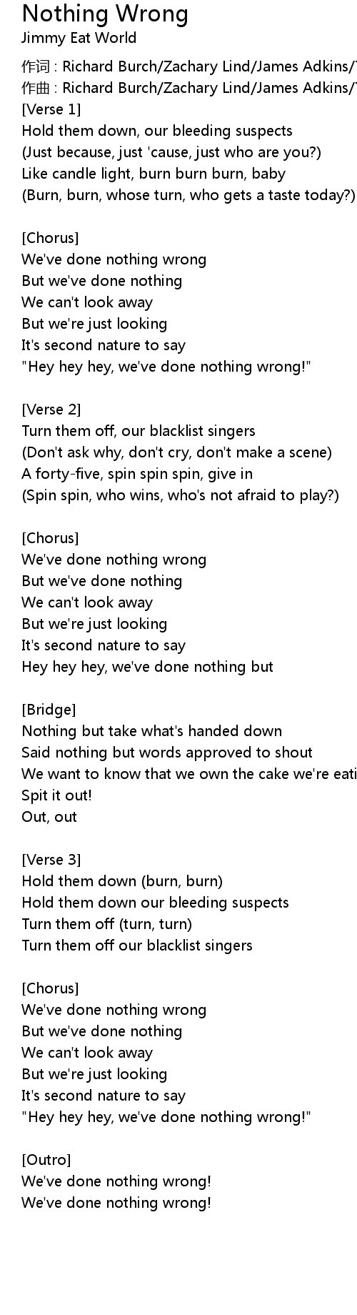 | " Hey hey hey, we' ve done nothing wrong!" | |