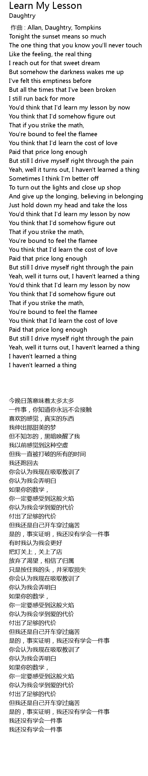 | [00:00.00] | 作曲 : Allan, Daughtry, Tompkins |