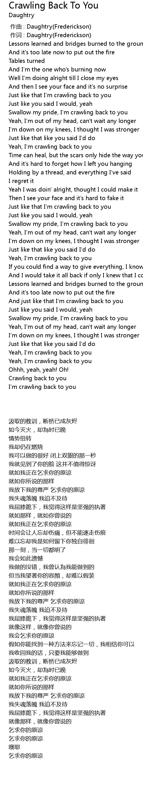 | [00:57.890] | Yeah, I' m crawling back to you |