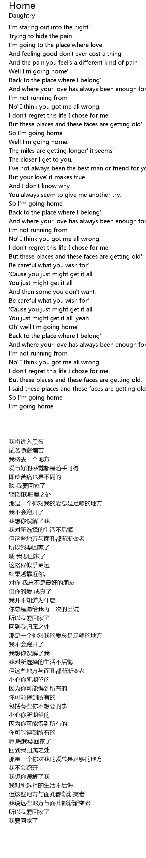 Well I'm going home' |