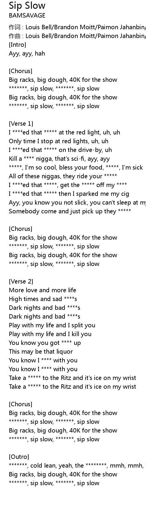 | *******, cold lean, yeah, the ********, mmh, mmh, ******* | |