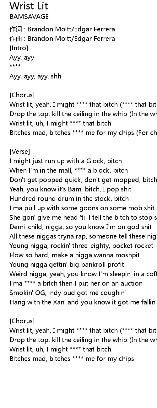 | Wrist lit, yeah, I might **** that bitch (**** that bitch) | |