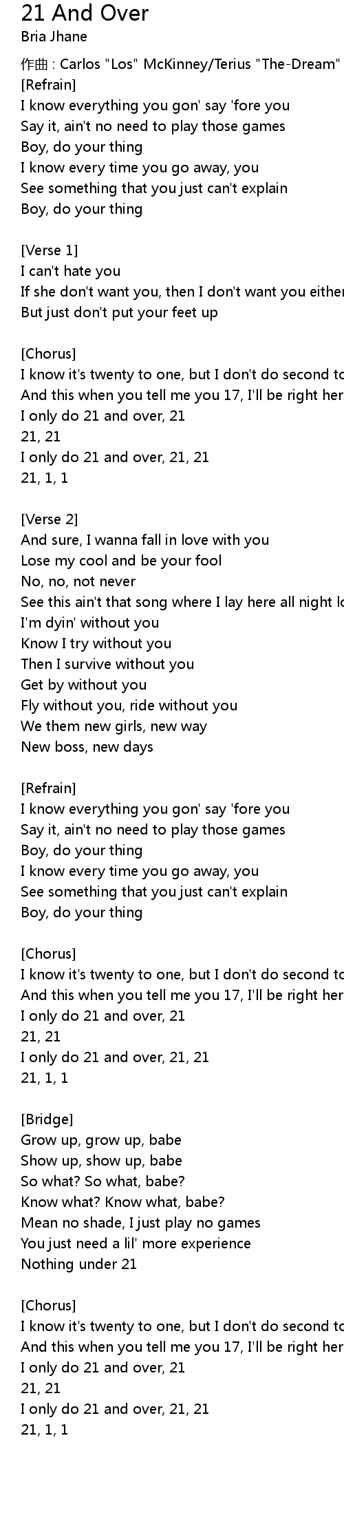 | 歌曲 | 21 And Over |