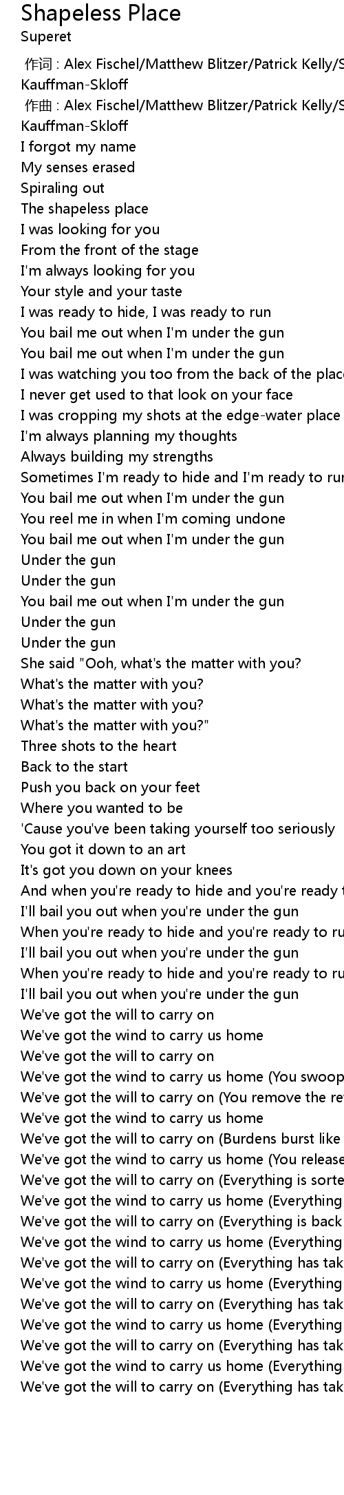 | [00:00.000] | 作词 : Alex Fischel/Matthew Blitzer/Patrick Kelly/Sam Kauffman-Skloff |