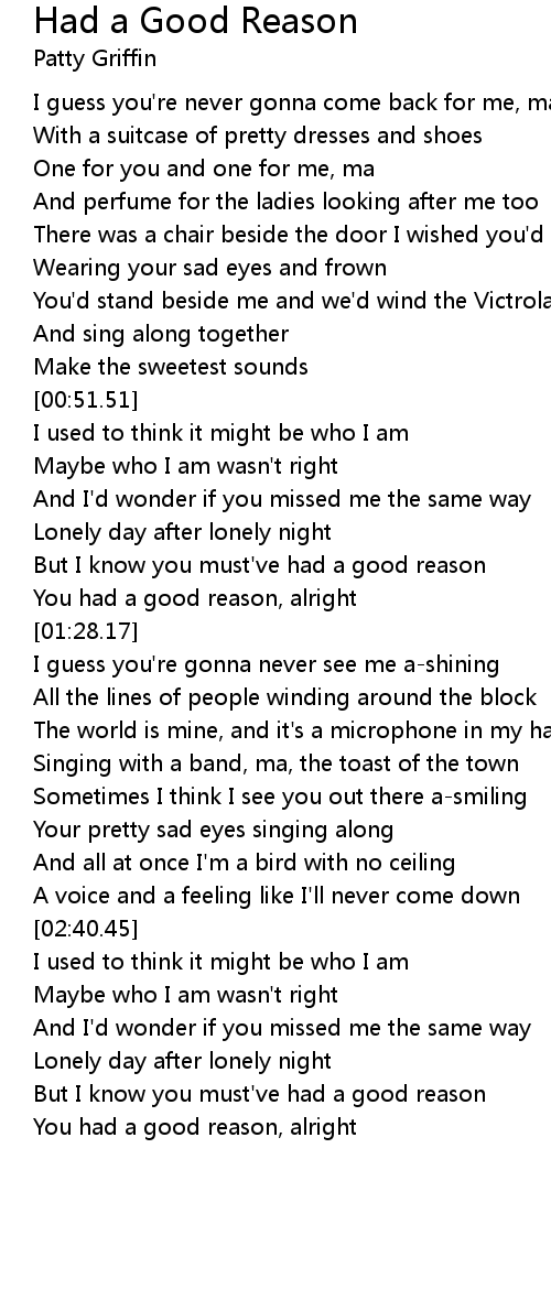 But I know you must've had a good reason |