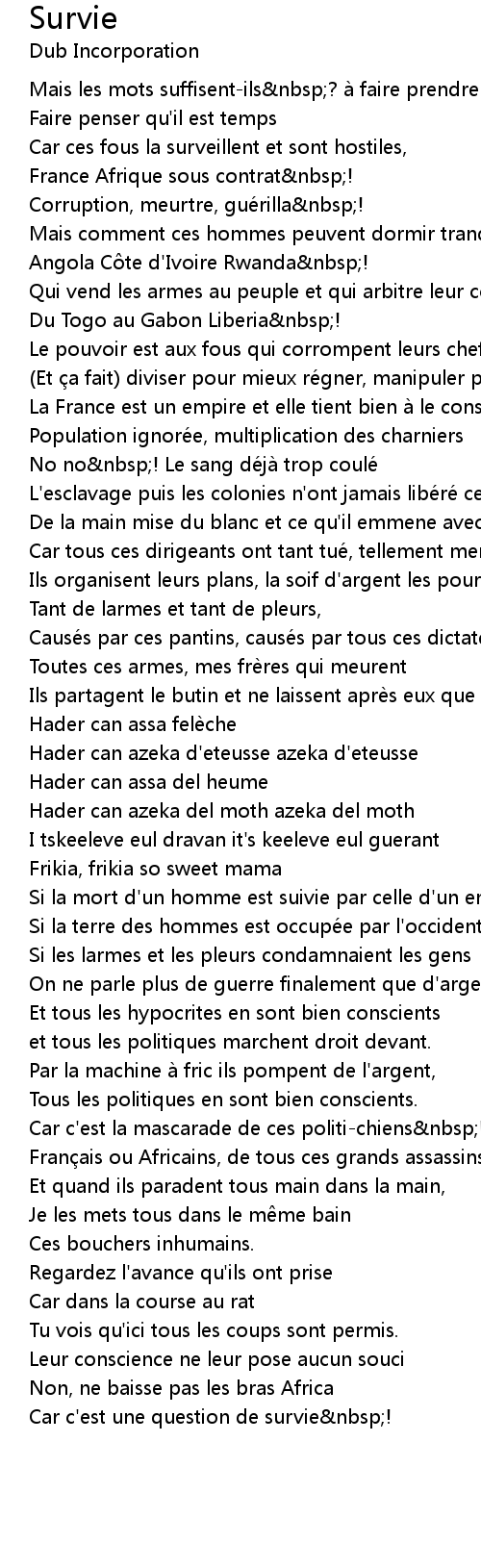 | 歌曲 | Survie |