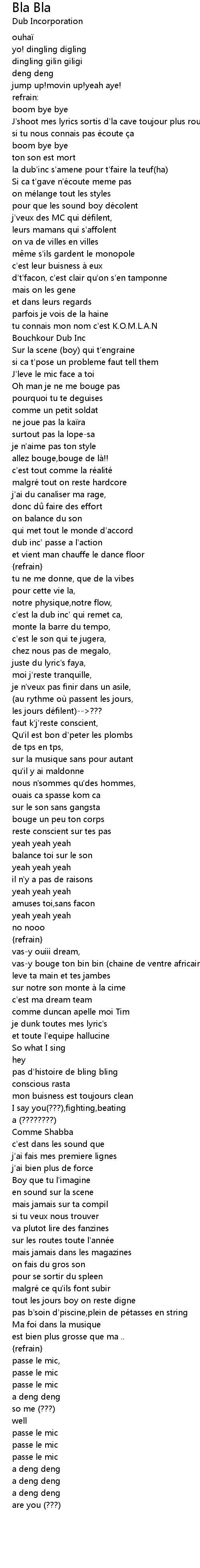 | la dub'inc s'amene pour t'faire la teuf(ha) | |