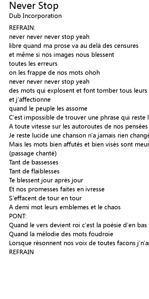 | never never never stop yeah | |