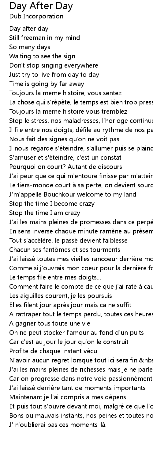 | Elles filent jour apre s jour mais ca ne suffit | |