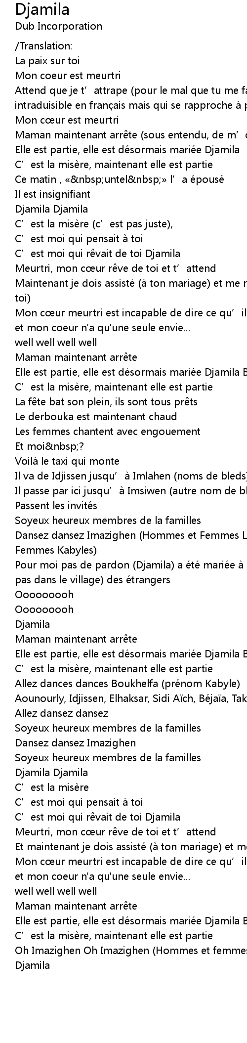 | Elle est partie, elle est de sormais marie e Djamila BIS | |
