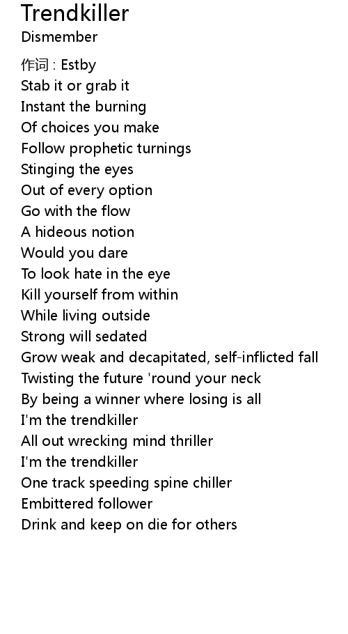| 歌曲 | Trendkiller |