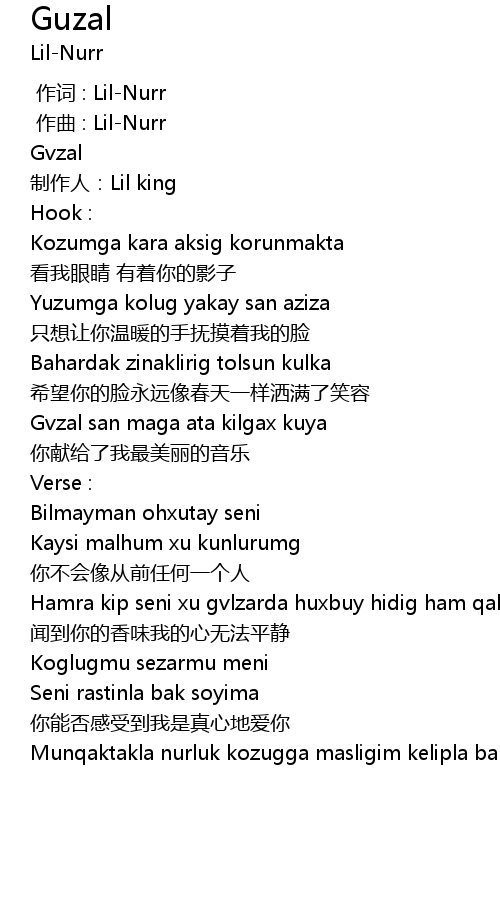 | [00:55.193] | Bilmayman ohxutay seni |