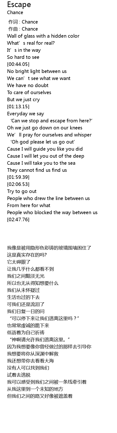 | [00:00.000] | 作词 : Chance |