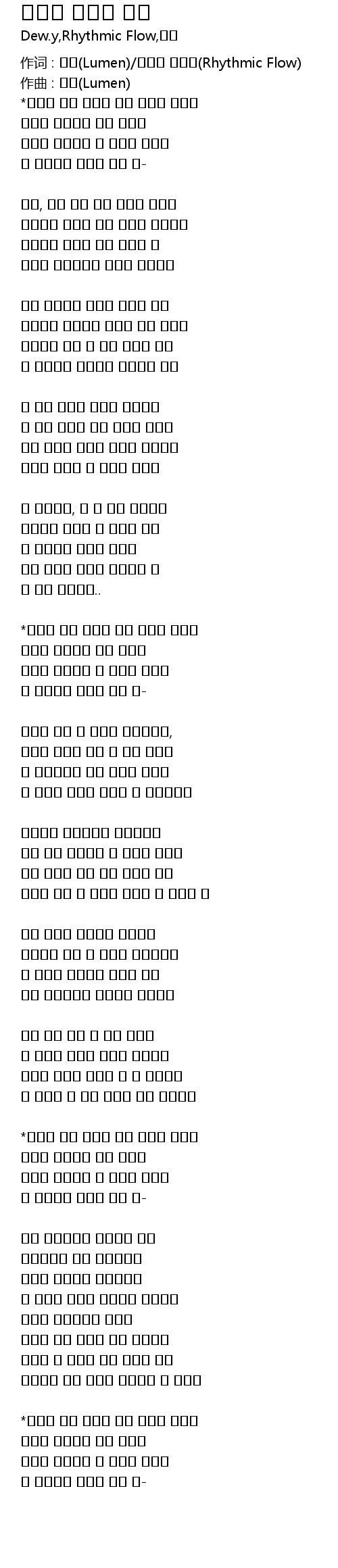 | 作词 : 루멘(Lumen)/리드믹 플로우(Rhythmic Flow) | |