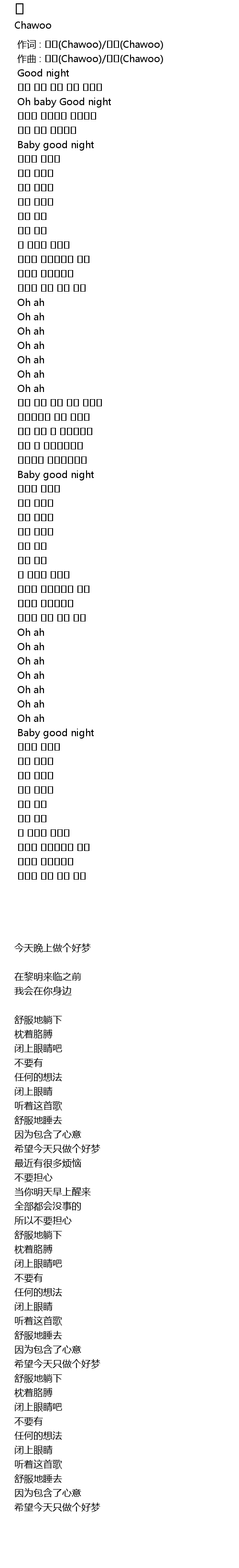 | [00:18.893] | Oh baby Good night |