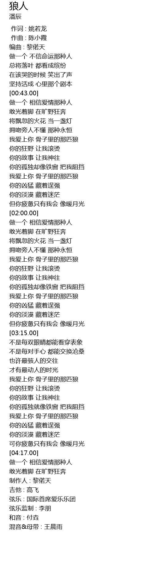 | [03:36.93] | 我爱上你 骨子里的那匹狼 |