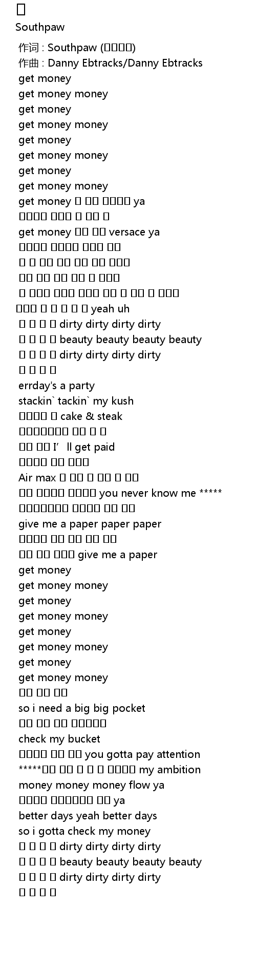 | [02:06.553] | 돈 돈 돈 돈 dirty dirty dirty dirty |