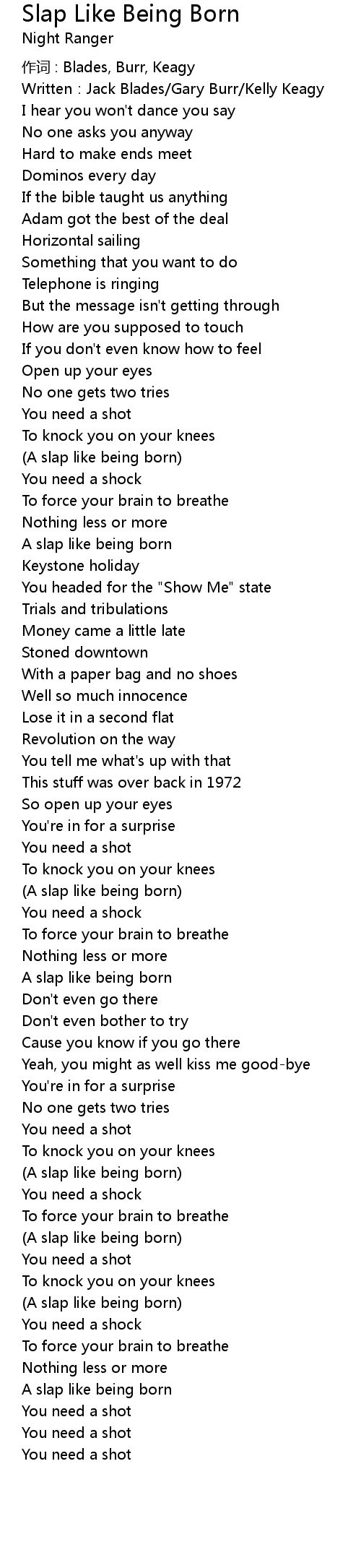 | 歌曲 | Slap Like Being Born |