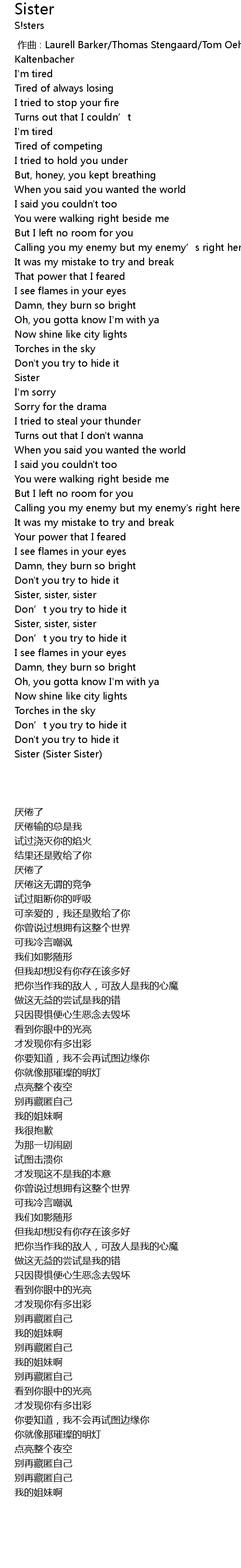 | [01:53.74] | Sister, sister, sister |