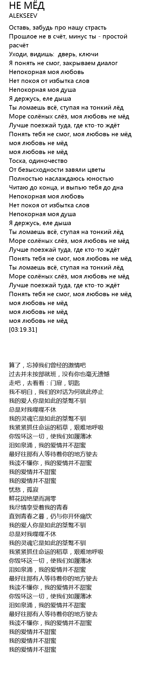 | [03:14.43] | моя любовь не мёд |