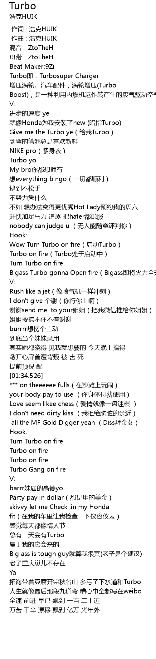 | [00:34.191] | Give me the Turbo ye(给我Turbo) |