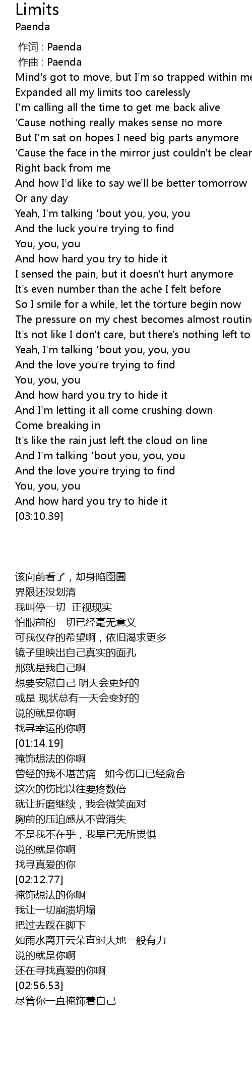 | [00:00.000] | 作词 : Paenda |