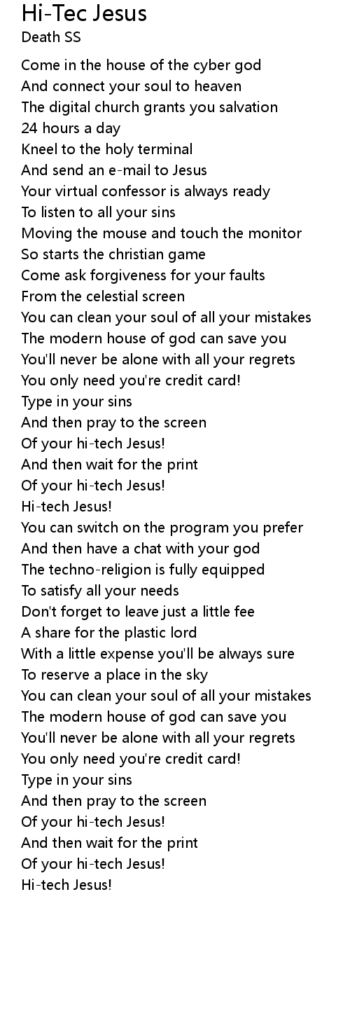 | Of your hi-tech Jesus! | |