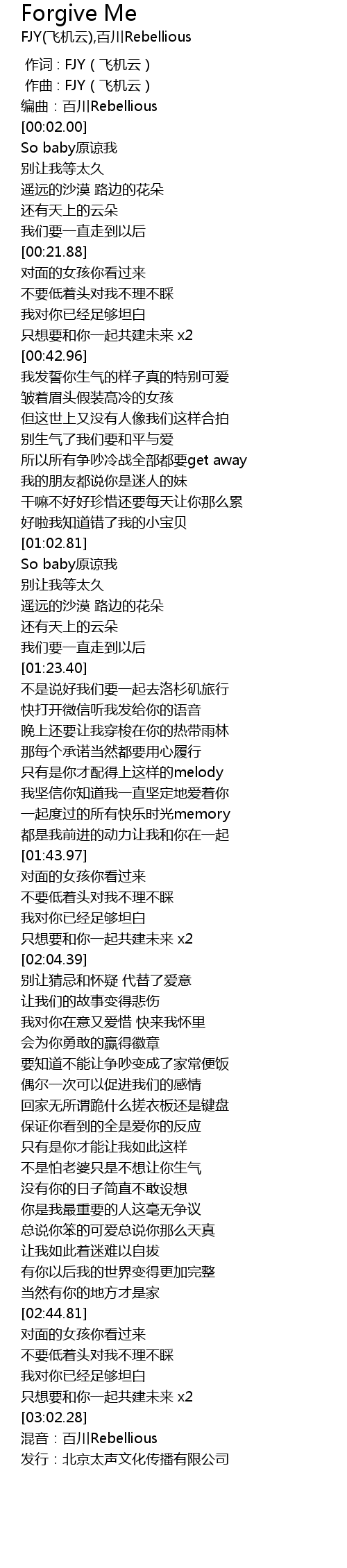 | [01:03.17] | So baby原谅我 |