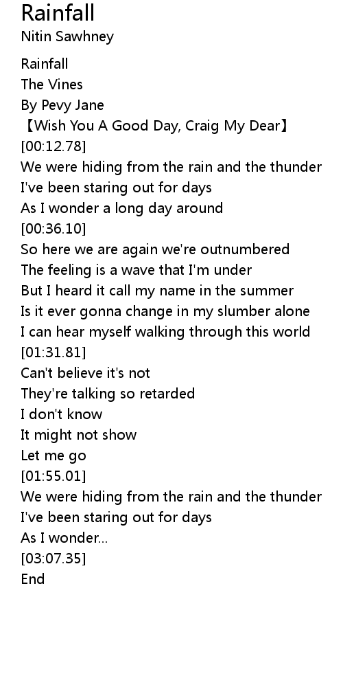 | [00:17.65] | We were hiding from the rain and the thunder |