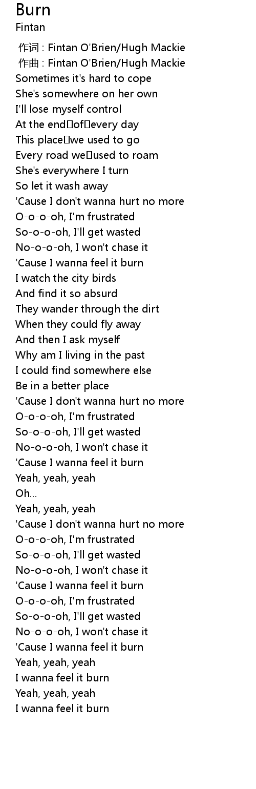 | [02:06.845] | 'Cause I wanna feel it burn |