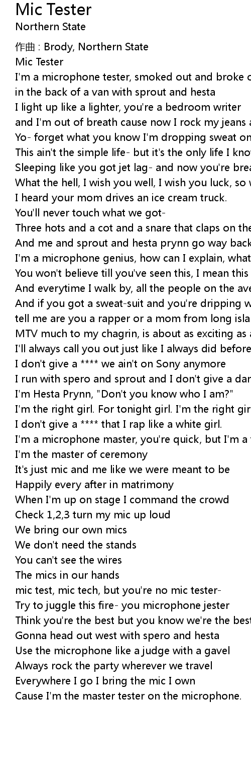 | I'm a microphone tester, smoked out and broke out | |
