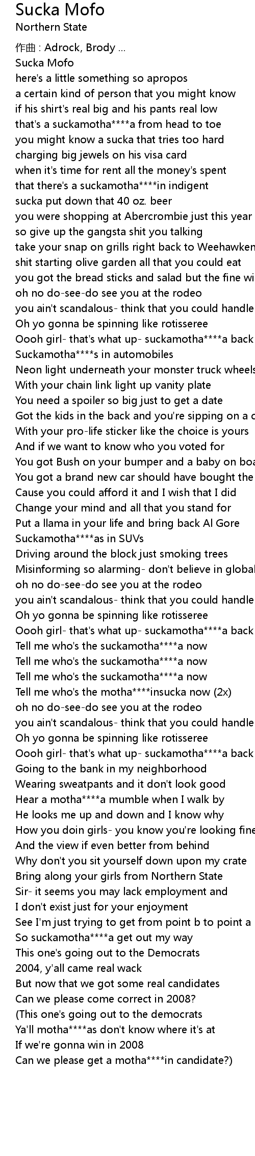 | Oooh girl- that's what up- suckamotha****a back the **** up | |
