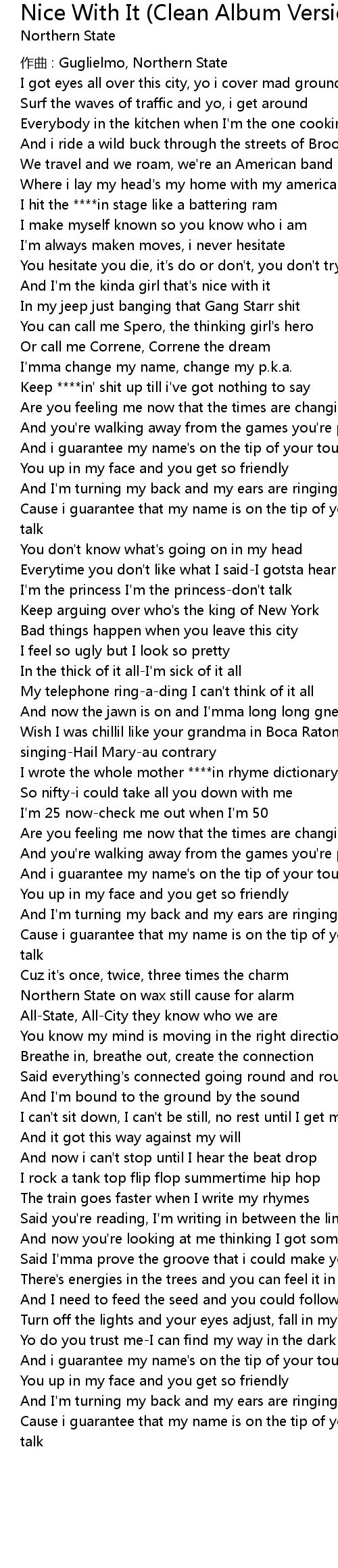 | 歌曲 | Nice With It (Clean Album Version) - Clean Album Version |