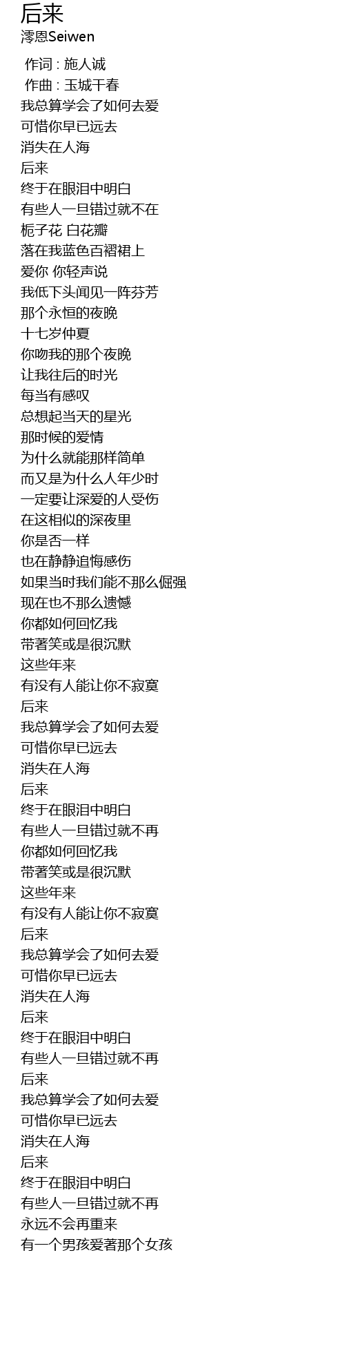 | [02:42.077] | xiāo shī zài rén hǎi |