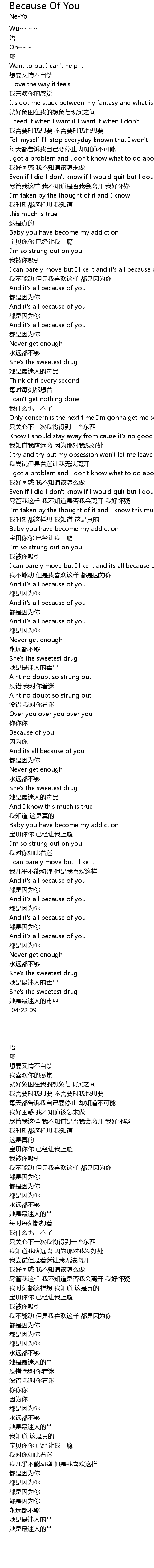 | [03:22.42] | yīn wèi nǐ |
