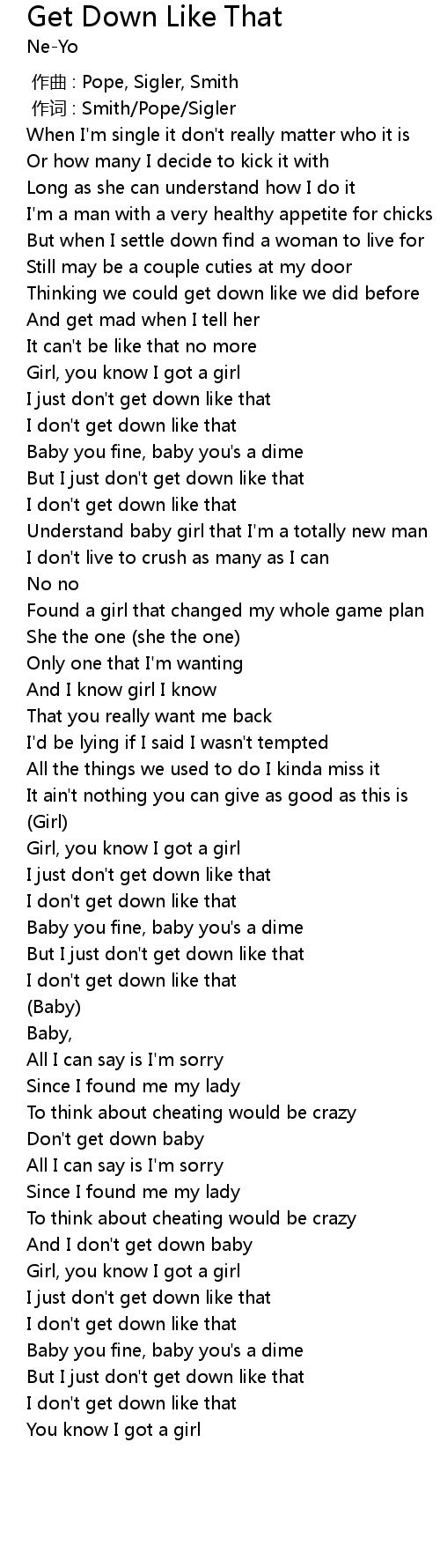 | [03:02.100] | And I don't get down baby |