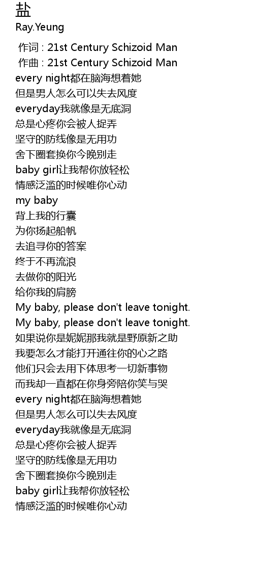 | [00:59.989] | My baby, please don' t leave tonight. |