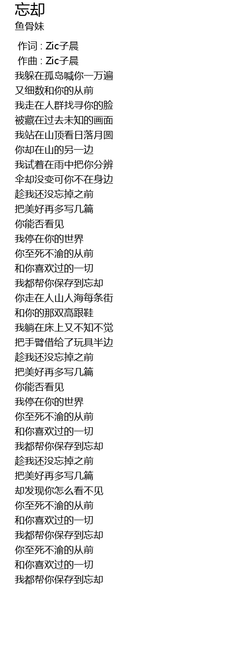 | [01:47.63] | 我都帮你保存到忘却 |